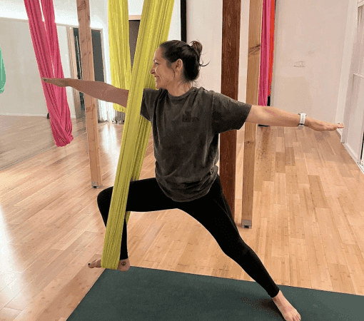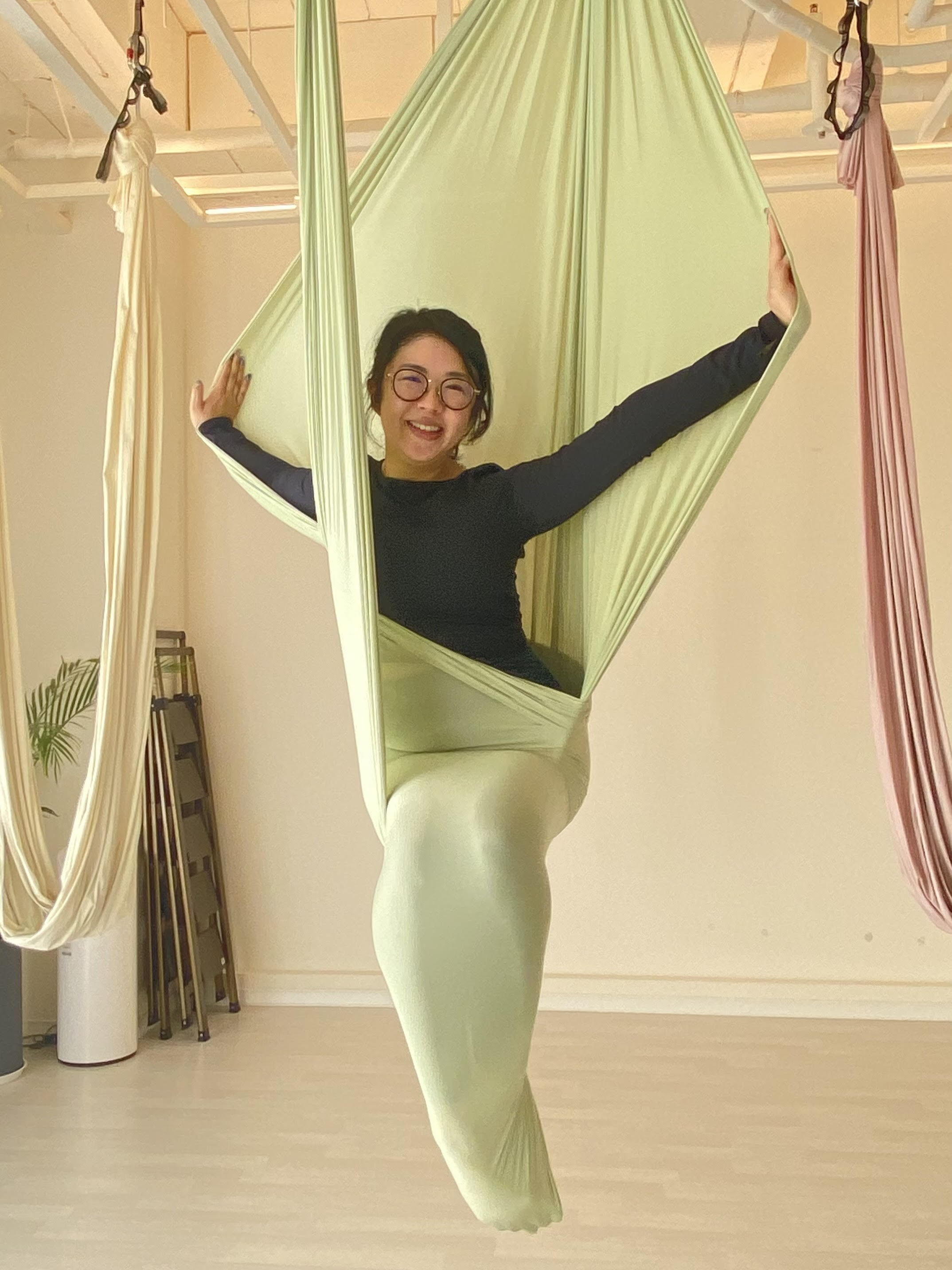 Cheryl started practicing yoga in 2018, initially looking for an “easy” form of exercise and activity after work — but she gained so much more than just the physical practice. Through yoga, she became more in tune with her body, found her communities, gained the confidence to challenge herself to new things on and off the mat, and most importantly, learned to trust herself. She started aerial yoga at Bootea Flow in August 2023 and has been hooked ever since! Cheryl fell in love with the studio because of how supportive and fun the community is, and she loves using the hammock as a tool to get deeper into stretches.